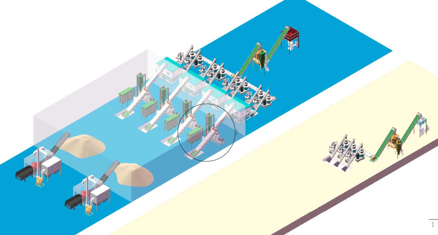 一條完整的顆粒生產(chǎn)線下來的話有下面幾個流程,以木屑顆粒為例: